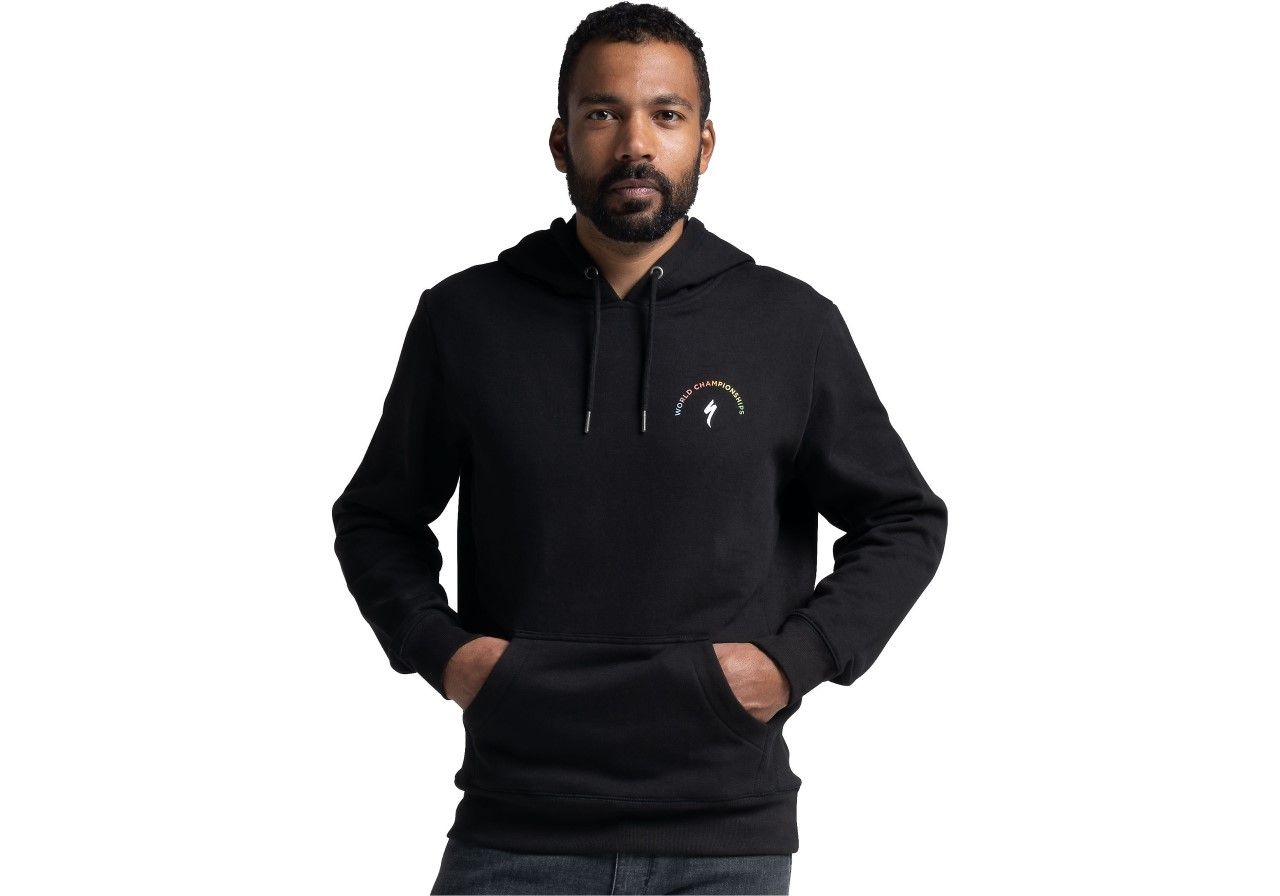Et medlem af Specialized’s World Champion Apparel collection - der er lavet for at hylde de 5 Specialized ryttere: Vincent Luis, Julian Alaphilippe, Tom Pidcock, Georgia Taylor-Brown, and Anna Van Der Breggen - her den fede hoodie med verdensmester farverne.